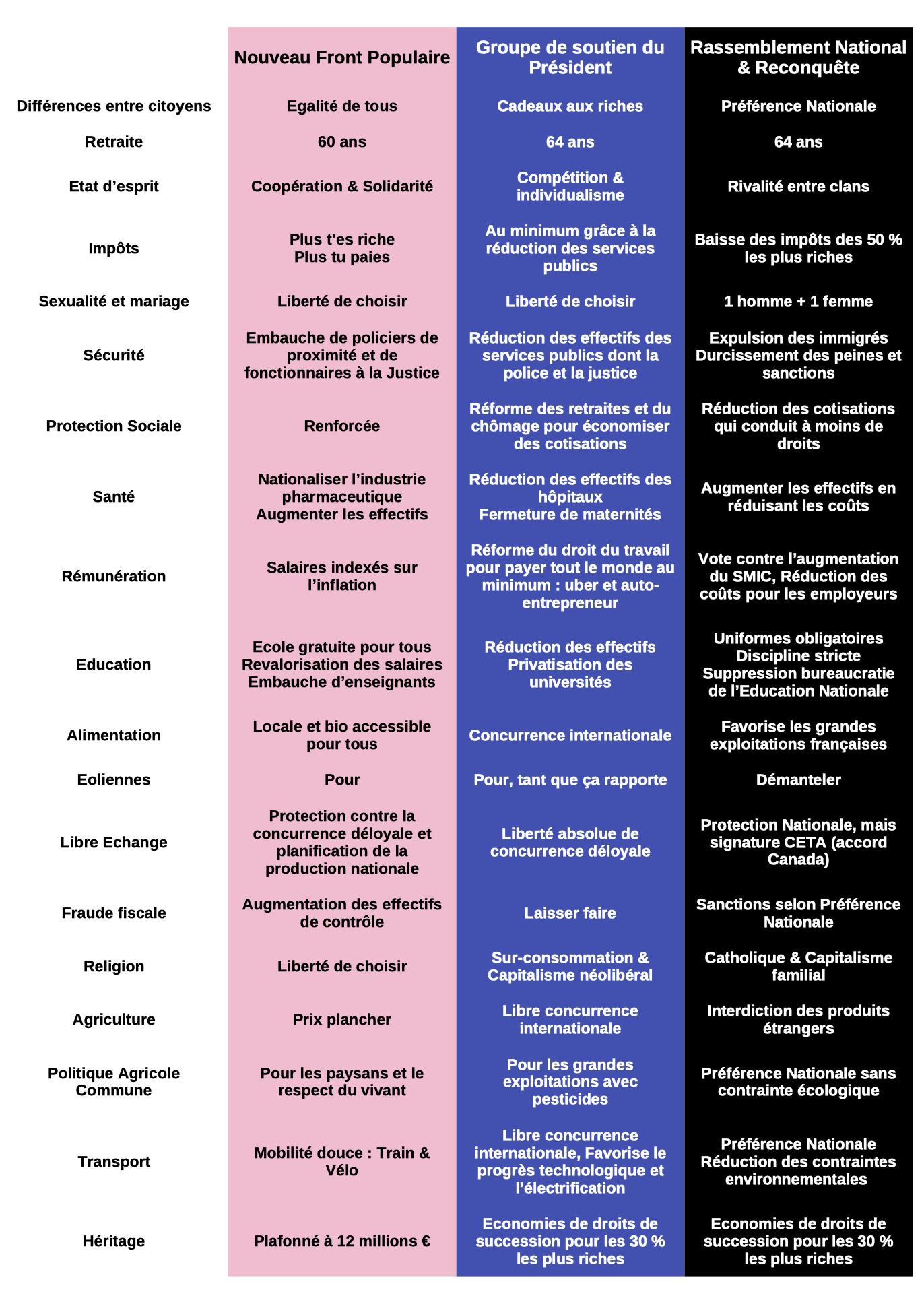 Citoyenne Citoyenne Libres de la Loire : Cette page propose des élements de comparaison de programme entre les forces en présence pour ces législatives 2024 réunies par le collectif C2L2