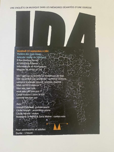 Ida l'ogresse se réveille un lendemain de fête. Une enquête en musiques dans les mémoires déjantées d'une ogresse qui se méfie de son ventre....